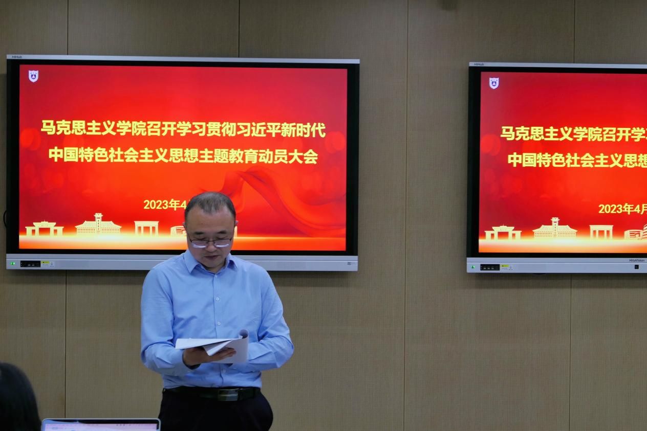 The Nanjing University (NJU) School of Marxism held a mobilization meeting for the thematic education campaign to study and implement Xi Jinping Thought on Socialism with Chinese Characteristics for a New Era on the afternoon of April 20. Members of the Party and administration leading group, teachers who are Party members, and the Secreatary of the Student Party Branch of the School of Marxism attended the meeting. Hu Daping, dean of the School of Marxism, presided over the meeting.