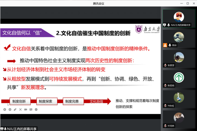 2020级研究生第二党支部开展“中国特色社会主义文化自信与当代青年文化素养”主题党日活动。本次主题党日活动由党支部书记姚瀚霖同志主持,党支部副书记王冉同志主讲。