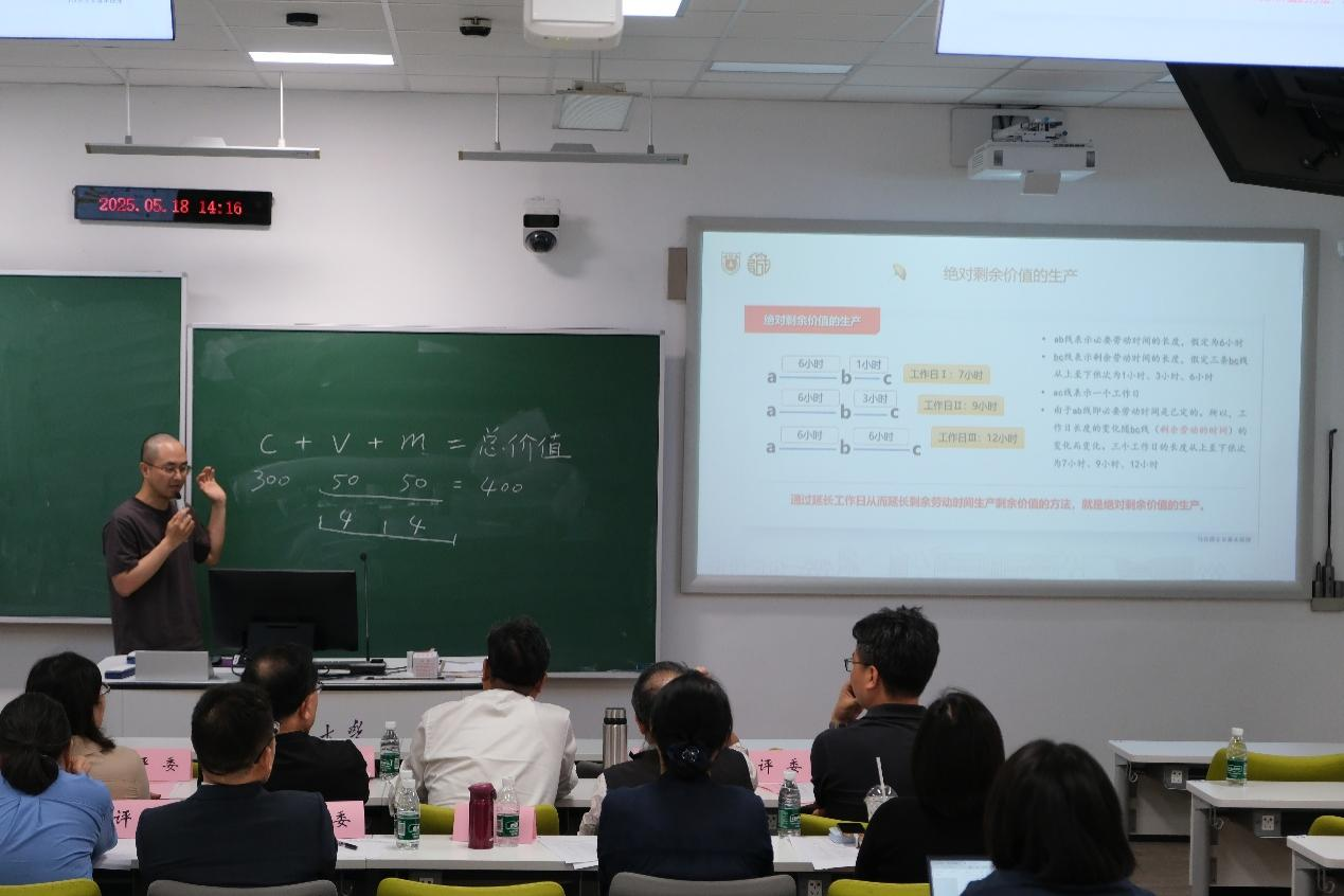 戴锐教授赞扬参赛教师们各有风格,同台竞技,精彩纷呈。随后他从三个方面提出了建议:首先是应当在比赛中重视选题,合理排布讲授内容与时间节奏;其次是要认真把握扣题准确性,加强理论阐述准确性;最后勉励各位老师要自觉精进教学艺术,做好生动的课堂引入,通过激情感染学生、实现师生共鸣。