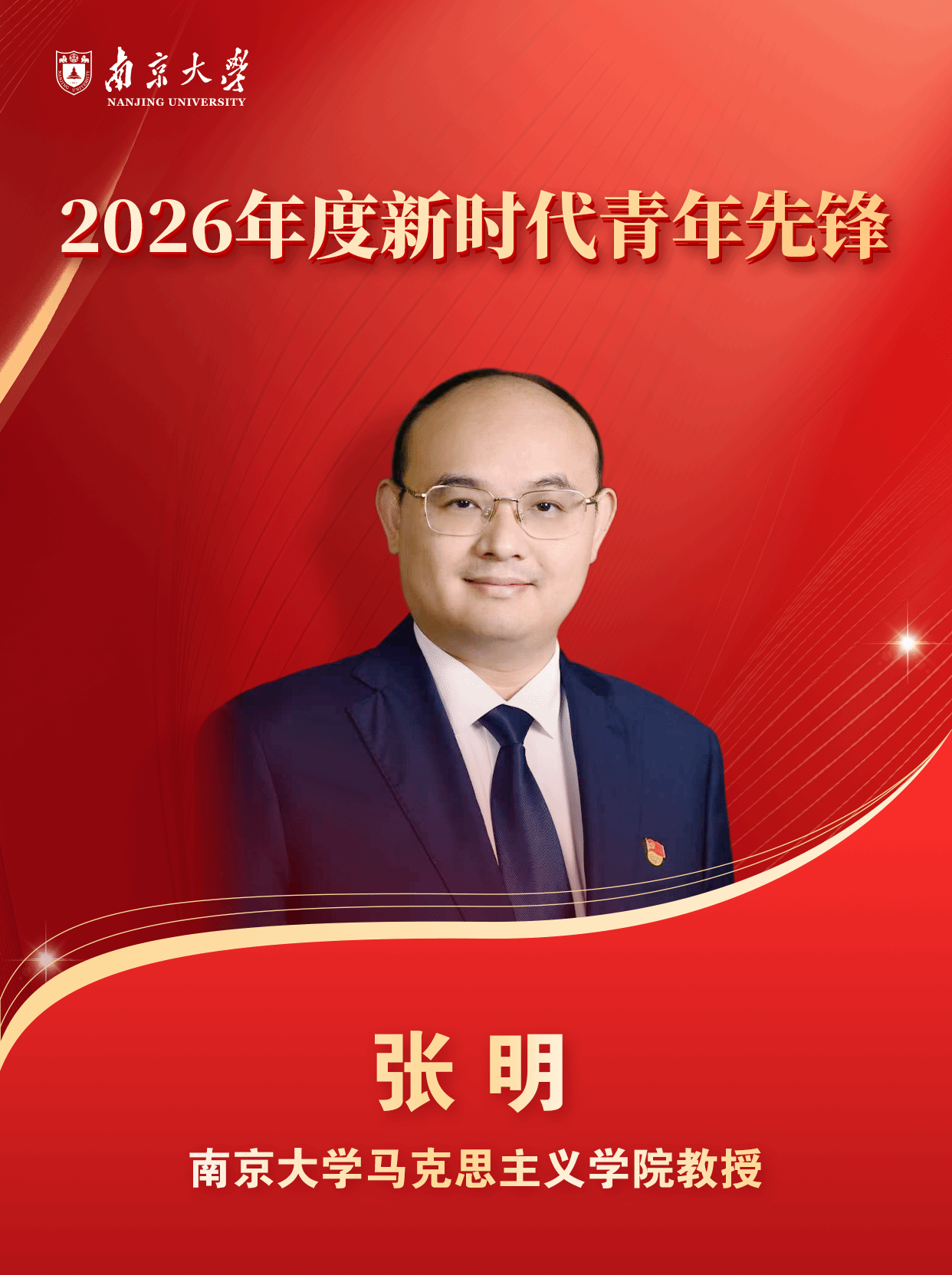 张明教授荣获“2026年度新时代青年先锋”。