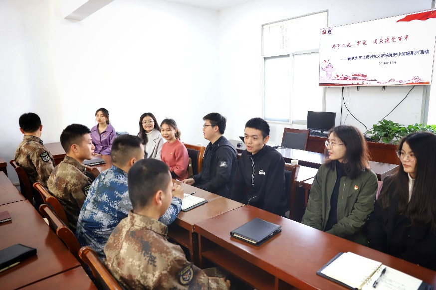 二是党史教育深入基层单位,2020年以来支部先后走进国防大学、东部战区某部、扬州完美企业、江苏高网,广泛调研军营、国企及两新组织,针对不同基层群体展开党史知识宣讲,为部队官兵、基层企业员工带去了一堂堂贴近实际、讲到实处、学得实在的党课。