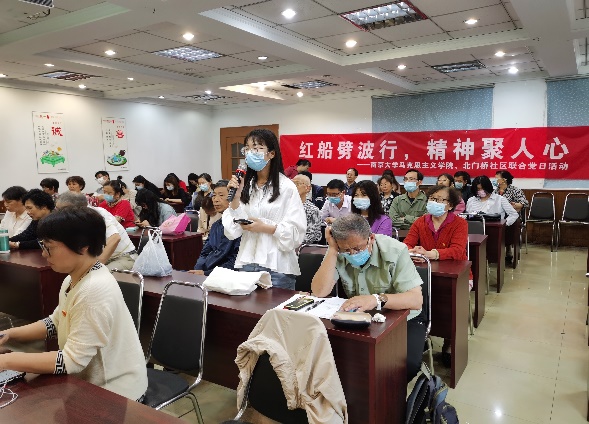 最后,北门桥党委书记黄滢同志对本次活动作简要总结,并对南大马院党支部开展的党课知识走进社区活动大加赞赏,期待与南大马院党支部的再次合作。活动最后,参会人员在北门桥社区党群服务中心党员活动室合影留念。