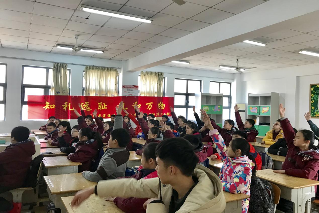 学生们认真学习,在礼仪知识竞赛的环节中更是表现优异。竞赛过程中,学生们热情高涨,踊跃举手发言,不仅能说出刚学到的小知识,还进行了生动的现场呈现,积极实现由知向行的转化。