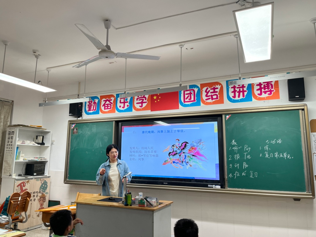 接着,周亦垚讲师从军事、通讯、科学、文化四方面向同学们介绍了风筝的贡献,特别是在文化贡献方面,潍坊风筝被列入第一批国家级非物质文化遗产名录。风筝作为中华优秀传统文化的一个代表,周亦垚讲师号召同学们要学习风筝文化,传承非遗文化,多多关注中华优秀传统文化,坚定文化自信,传承匠人精神。理论讲解的最后,周亦垚讲师通过问答的方式回顾了整节课程,帮助同学们加深了记忆。