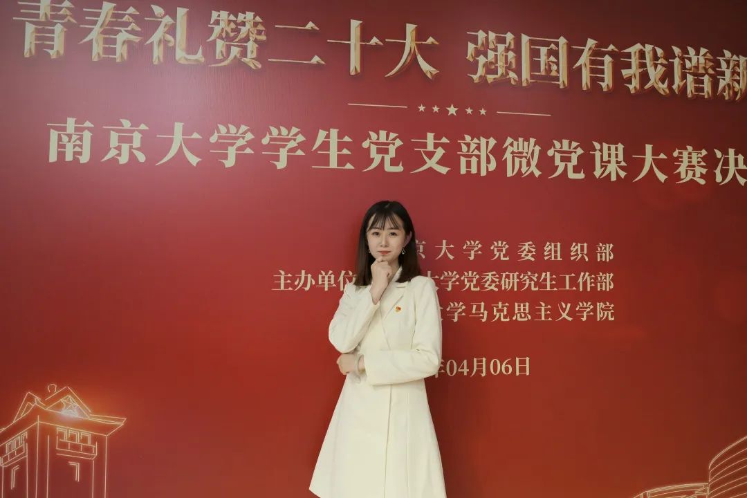 团委新媒体中心主任。她恪尽职守,臻于至善,负责“NJU马院”公众号的运营,及时传递学院资讯,负责各类活动的拍摄设计工作,热忱服务全院师生。她力学笃行,履践致远,积极参与各项科研、实践及志愿活动,曾获学业一等奖学金、2022年度优秀研究生等荣誉称号。