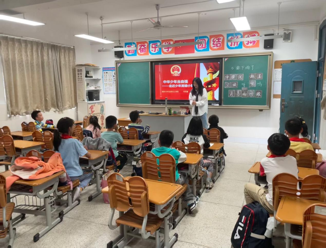 南马微芒服务队来到了南京晓庄学院附属小学。马克思主义中国化研究专业2022级硕士生何雨潼、毛婉婷两位同学带来了以《中华少年当自强》和《真理的味道香又甜》为题的精彩宣讲。用志愿服务点亮小朋友们的心灵之灯,用红色故事点缀小朋友们的童年时光。