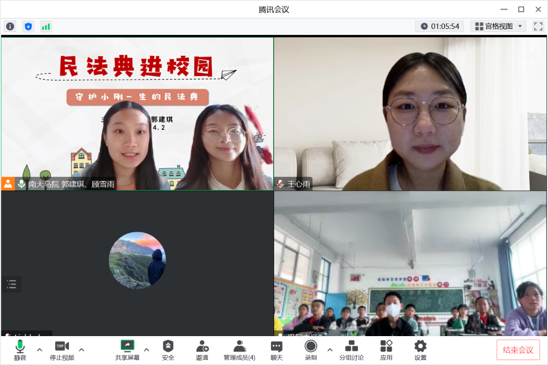 中国近现代史基本问题研究专业2022级硕士研究生顾雪雨和郭建琪同学为妥甸中学的同学们带来了以《民法典进校园》为题的精彩课程。