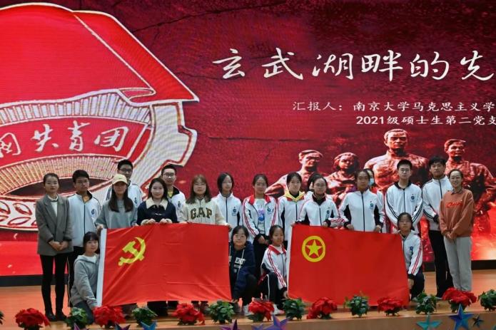 2021级硕士生第二党支部与南京市第十三中学联合开展“喜迎二十大,奋进新征程”系列党日活动第1期:教育专题——党史宣讲进校园。支部成员张沁园同志作“玄武湖畔的先声”主题宣讲,十三中全体师生与麻豆传媒