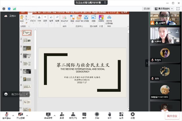在项目日程的最后,同学们进行科研科考汇报与开题。同学们纷纷表示,本次国际化“云”科考提供了与国际、国内学术前沿对话的机会与平台,让同学们打开了国际视野;同时,这场跨文化、跨学科的科考之旅,也培养了同学们的科研兴趣,提高了同学们发现问题、研究问题、解决问题的能力。最重要的是,通过对马克思主义经典作家、经典文本、经典问题的探讨与学习,增强了同学们对马克思主义的信仰与信心,激励着同学们在新的历史起点上,树立起高度的历史自觉,用马克思主义的世界观和方法论,去回答时代之问、人生之问,在实现中华民族伟大复兴的生动实践中,不断开辟马克思主义中国化时代化新境界。