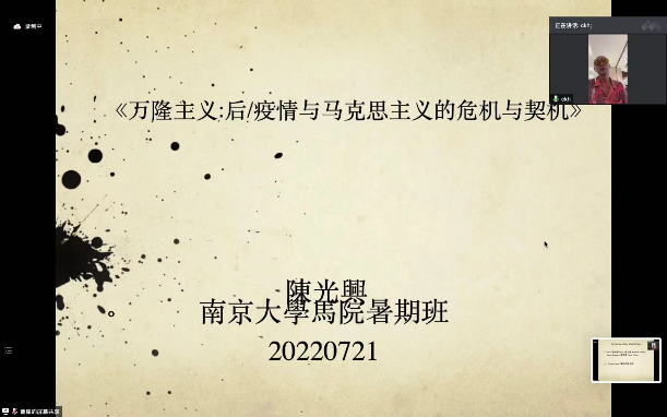 7月13-22日,项目邀请国内外知名学者为同学们开展了精彩纷呈的讲座。7月13日,恩格斯故居博物馆前馆长Eberhardt Illner为同学们带来了《机器与人:马克思、恩格斯的机器观》学术讲座;柏林自由大学的Hauke Neddermann老师讲解了《< 马克思主义历史考证大辞典>的过去与现在》;中央党史与文献研究院的徐洋老师分享了《马克思恩格斯文献的中文编译》;中国人民大学国际关系学院的马嘉鸿老师讲述了《第二国际与社会民主主义》;柏林洪堡大学的Thomas Meyer老师和明斯特大学的Tim Rojek老师联合带来《德国马克思主义研究现状》主题讲座;意大利贝加莫大学Riccardo Bellofiore老师分享了《马克思思想的当代价值》;台湾清华大学文化研究中心的陈光兴老师讲解了《万隆主义:后/疫情与马克思主义的危机与契机》;清华大学的夏莹老师分享了《德勒兹< 反俄狄浦斯>中的资本批判:路径与旨归》。不同地区的不同学者们为同学们分享了不同主题的讲座,同学们积极互动,踊跃提问,在观点碰撞、思想启迪中感受马克思主义的蓬勃生机与学术科研的魅力所在。