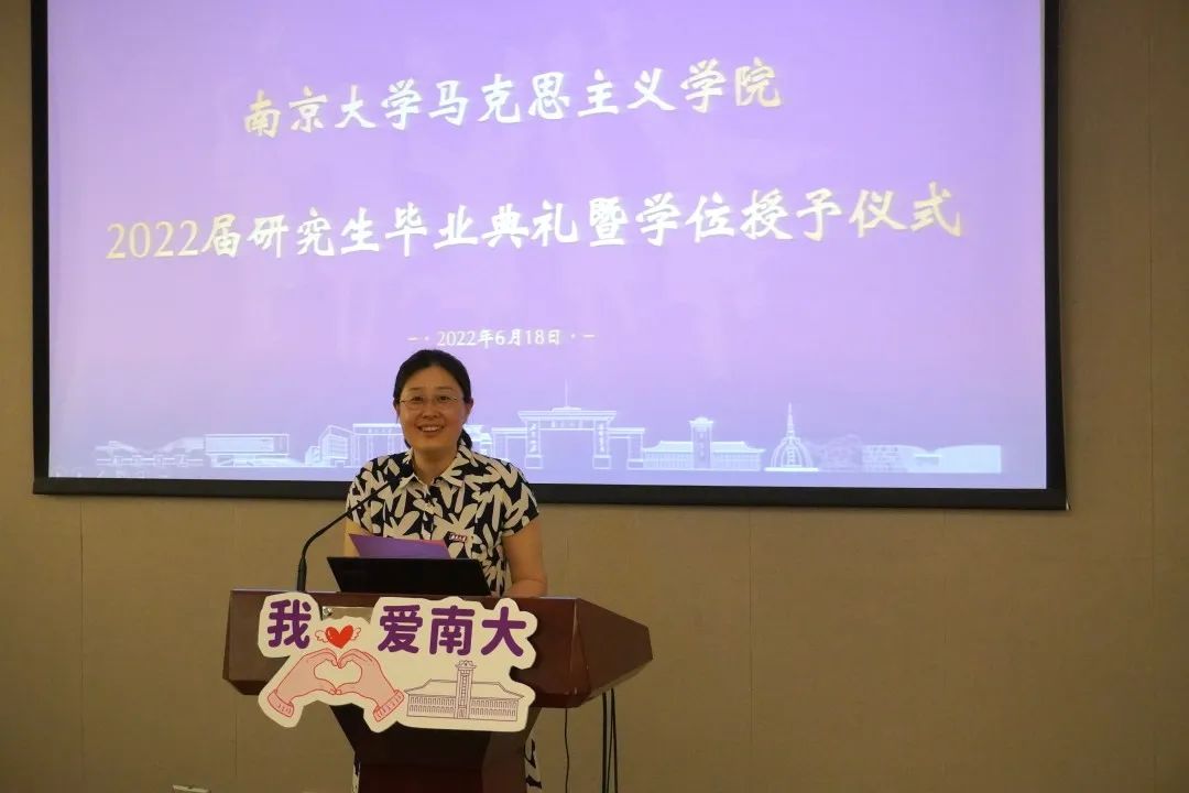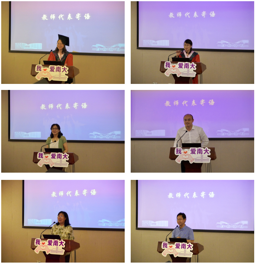 在教师代表寄语环节,到场的老师们一一表达了对毕业生的祝福期冀。陈继红老师寄语毕业生们“不忘初心,前程似锦”。熊秋良老师表示聚是一团火、散是满天星,愿大家将在南马所学指引未来征程。丁蕖老师祝福全体毕业生“无论你们是继续深造或是走上社会大舞台,我都为你们感到高兴,由衷祝福你们乘风破浪,奔向你们的星辰大海”并期待与毕业生们将来再聚首。张明老师敦促大家走向社会大课堂这一新的起点继续保持不断学习的心态。李喜英老师祝福走上人生新阶段的全体毕业生快乐平安。暴庆刚老师送给即将走向工作岗位的同学三句话:多多理解他人,换位思考;把工作当作提高自我机会而非负担;把人生的磨难当成一种修行。