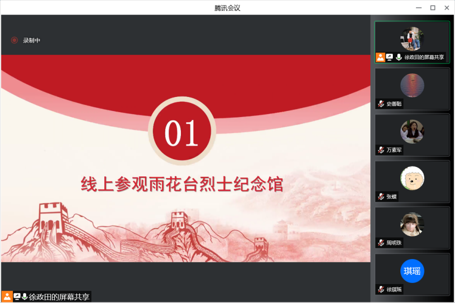 南京雨花台,落花如雨;雨花台烈士陵园,群雕叠阶。活动伊始,徐政田简要介绍了南京雨花台名称的由来、雨花台烈士陵园主体建筑及本次活动议程。此次党日活动分为“线上参观雨花台烈士纪念馆”、“麻豆传媒