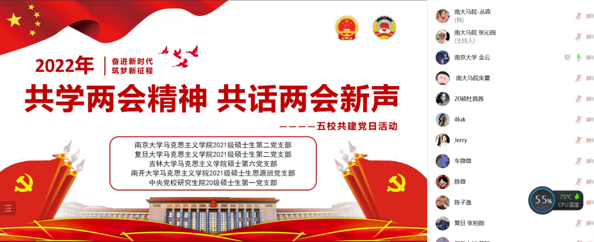 2021级硕士生思源班党支部、中央党校研究生院20级硕士生第一党支部开展“共学两会精神 共话两会新声“——五校共建党日活动,活动由麻豆传媒