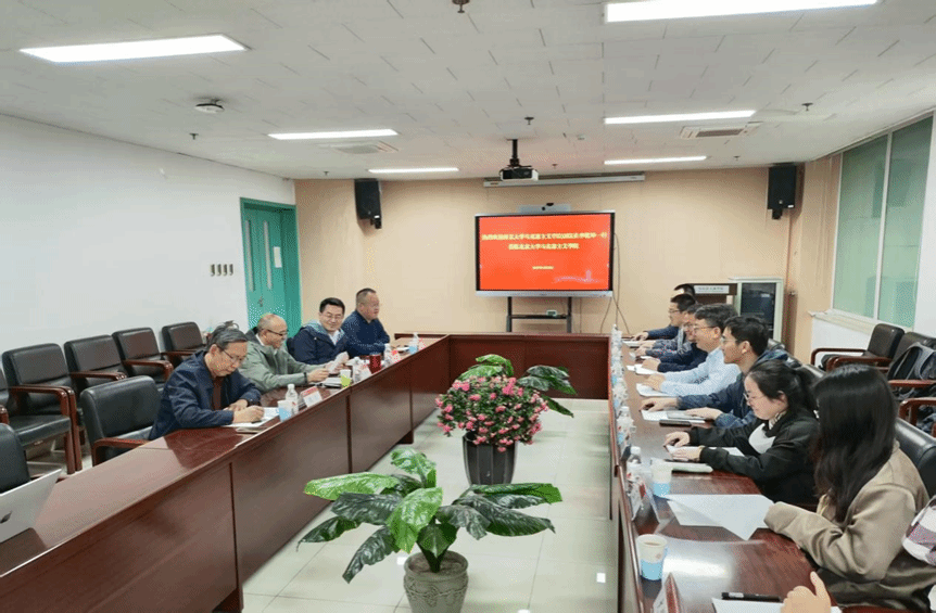 接着,教研室一行赴北京大学马克思主义学院进行学习调研交流。北京大学马克思主义学院院长仰海峰、书记孙来斌、副院长陈培永、马克思主义基本原理研究所所长魏波、教师代表夏少光、《当代中国马克思主义研究》编辑部陈建琪出席会议。仰海峰院长首先代表北大马院对我教研室来访表示热烈欢迎,并详细介绍了北大马院的历史沿革、教学成果和人才培养等基本情况。随后,魏波所长重点介绍了北大马院马原理教研室的发展现状,分享了北大思政课以课程模块为中心的特色教学模式,并对马克思主义基本原理课程的未来改革方向进行了展望。双方教师进一步围绕本科生培养、马原理课程教学设计和思政课堂的课程管理等相关议题展开了卓有成效的讨论。