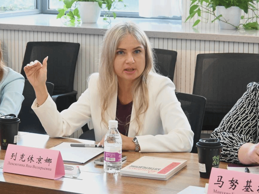 代表团团长、俄罗斯科学院中国与现代亚洲研究所副所长列克休京娜女士发言,她希望借助中俄教育年的契机,通过此次会面探索后续合作的可能性,她介绍了研究所的发展历程、组织结构以及各研究中心的主要研究方向,并重点说明了研究所出版的期刊和专著。