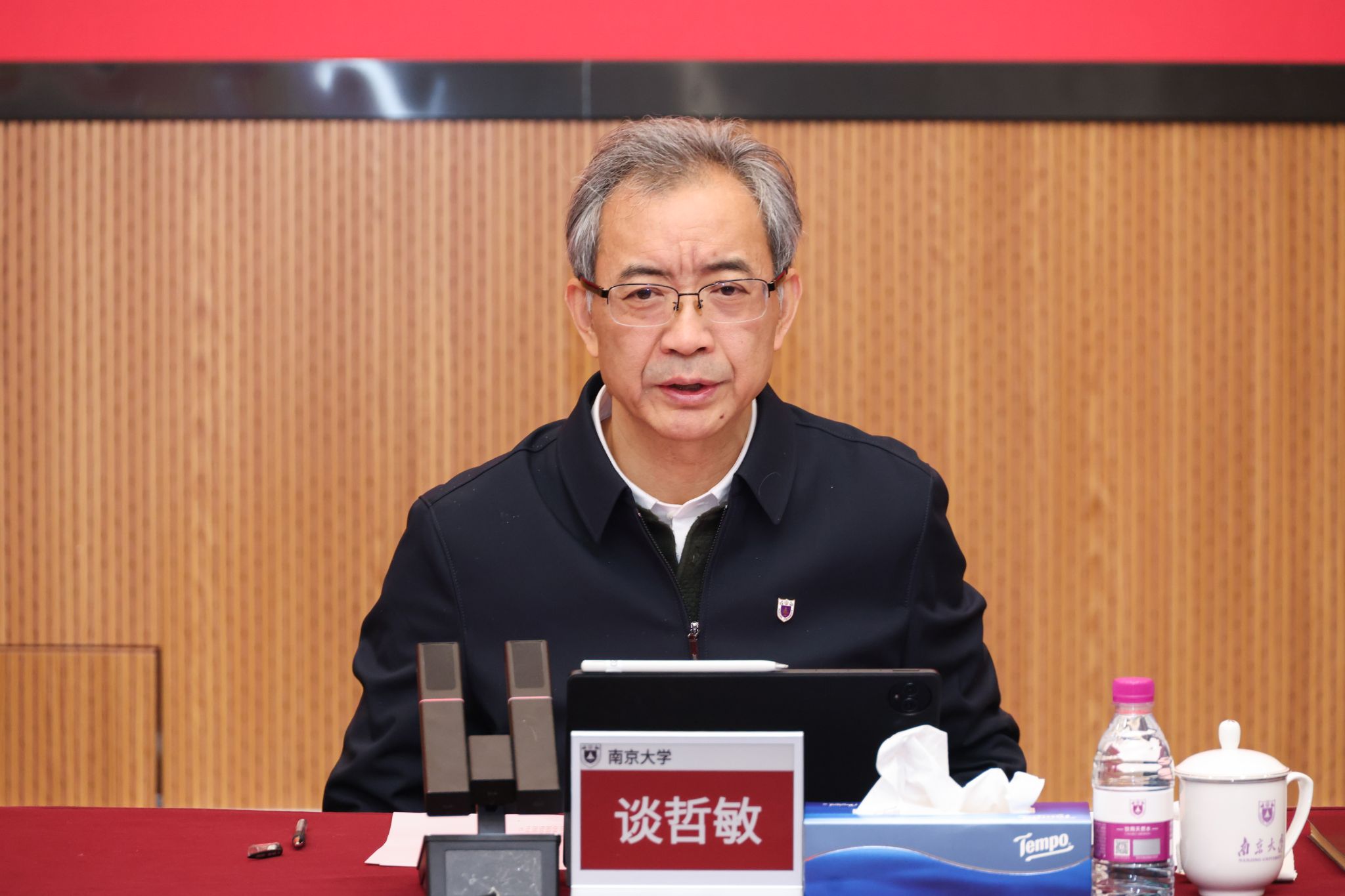 12月24日,南京大学召开深化新时代学校思想政治理论课改革创新工作领导小组会议,并开展《习近平新时代中国特色社会主义思想概论》课程集体备课。校党委书记谭铁牛主持会议并讲话,校长谈哲敏出席会议并讲话。