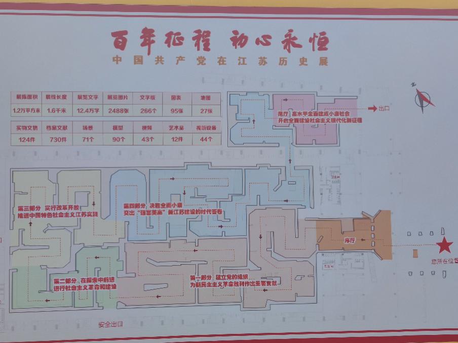 馆内主体展区按照历史脉络,分为四个部分,展项多达3990个,展线长达1600米。详实记录了1921年至2021年间中国共产党在江苏从无到有、不断壮大的历史伟业,讲述了江苏在百年奋斗中取得的辉煌成就。现场,师生们驻足仔细观看,认真领悟学习,通过珍贵的图片、实物、档案、地图等,了解中国共产党在江苏波澜壮阔的历史,从中感悟坚定初心。