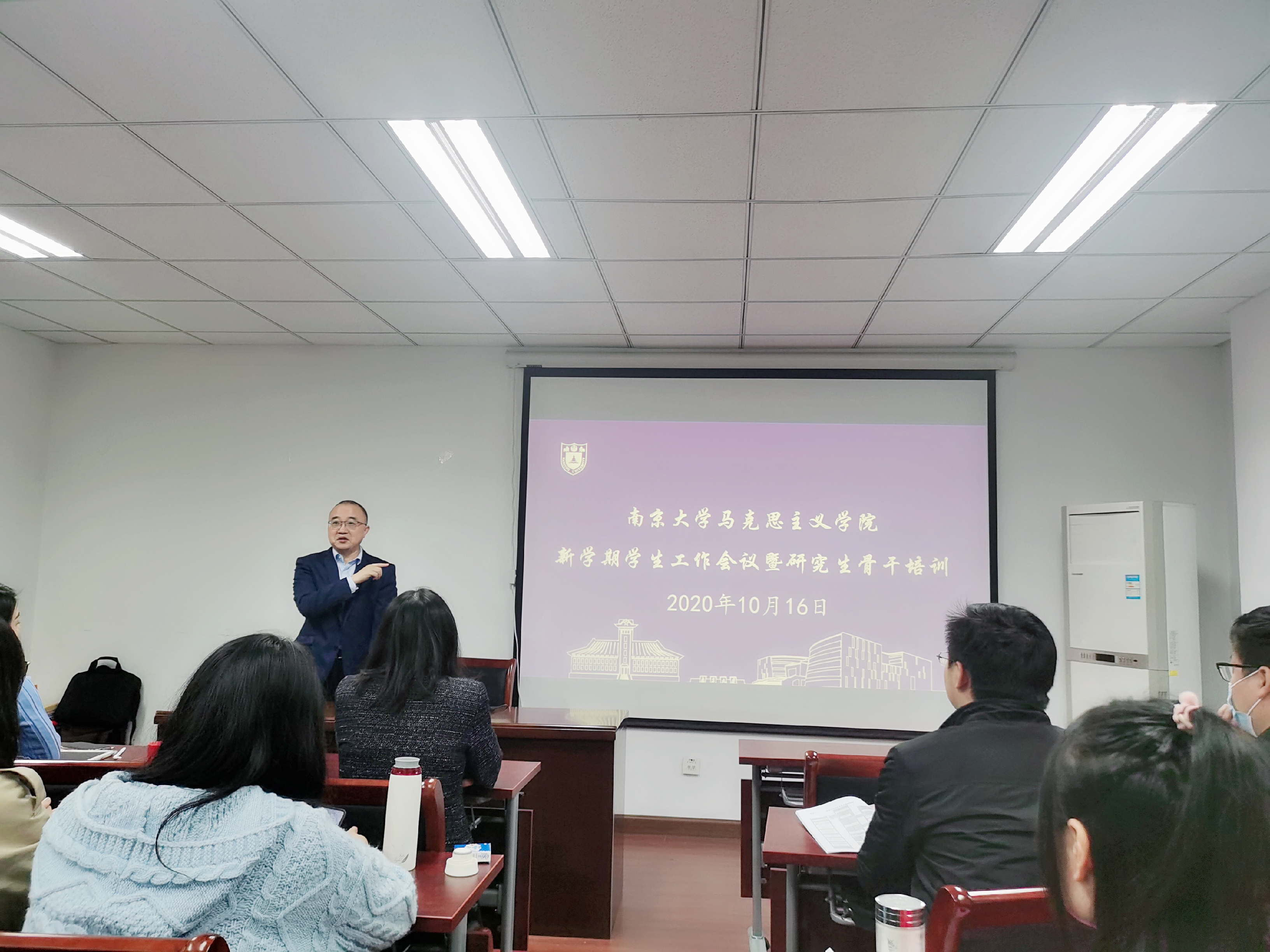 为贯彻落实我校我院新学期工作会议精神,加强研究生骨干培养,推进党团、班级、研会组织建设,10月16日,马克思主义学院于圣达楼211室举办新学期学生工作会议暨研究生骨干培训会,马克思主义学院团委委员、研究生会主席团、党支部(副)书记、团支部(副)书记、班长共同参与此次会议,马克思主义学院党委书记王建华、党委副书记时昱出席,马克思主义学院团委书记刘晶月主持会议。