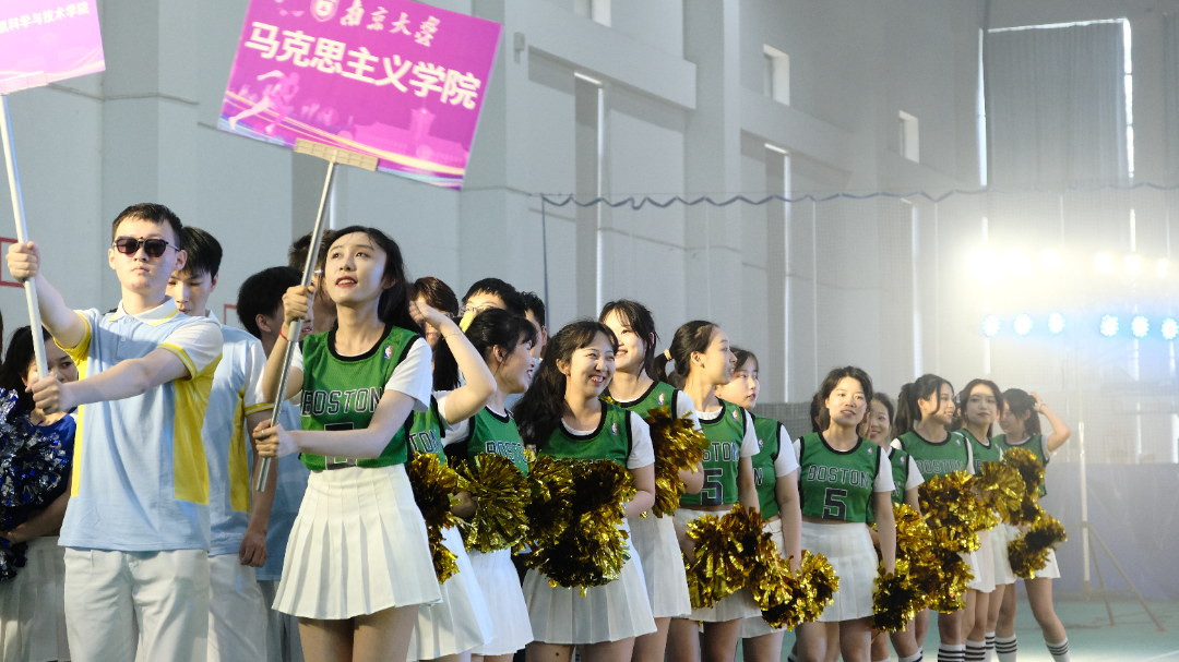 伴随激情的音乐与热烈的欢呼,27支代表队依次进场进行展示。随后,一首《青春有你》将属于年轻人的活力瞬间点燃,明媚耀眼的服装、缤纷闪亮的花球、热情四溢的笑容,在5·20这个充满爱与幸福的日子里,我们看到了属于南大学子的魅力。舞动青春,活力无限,一场精彩绝伦的视觉盛宴是献给南京大学121岁生日最独特的礼物。