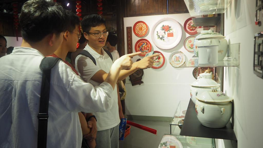 在百年老物件展馆内,跨越时空的老物件吸引了同学们的目光。这些老物件记录着白塔村从贫困到富强、从落后到文明的发展历程,也承载着新中国从百废待兴到繁荣昌盛的历史变迁。位于展馆二层中央的“三转一响”更加彰显出历史的烙印——作为上世纪六七十年代最高财富象征的缝纫机、自行车、手表和收音机,是当时人们心目中的“小康”生活的标准。现如今,更加先进的设备、物资飞入了寻常百姓家,这些老物件化作历史的记忆留存在展馆内,象征着白塔村村民在任何时代都对美好生活保持不懈的追求。