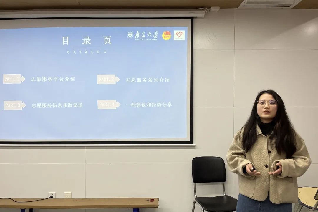 会议第三项议程由校团委的团学骨干为大家进行团内推优、社会实践、志愿服务等三项支部重点工作的介绍与交流。曾任校团委青共校副秘书长的姚瀚霖同学结合制度规定和自身工作经验,详细介绍了团内推优入党工作的内涵、对象、条件以及工作程序等内容,指出团内推优作为党团互通的一项关键性工作,应当严格把关,有效落实。“实践”出真知,“实习”见真谛。针对同学们比较关心的社会实践的相关问题,现任校团委社会实践部部长王泽森同学从实践和实习两个方面解答了同学们的疑惑,并重点介绍了南京大学“全青实习岗”,鼓励同学们走出课堂,用脚步丈量祖国大地。针对如何更好开展高质量的志愿活动,现任校团委志愿服务部副部长贾姣妹同学详细介绍了我校志愿服务平台和志愿信息获取渠道,并建议大家以团学组织协作的方式开展志愿活动,让团员青年在服务中真切感受志愿精神的深刻内涵。