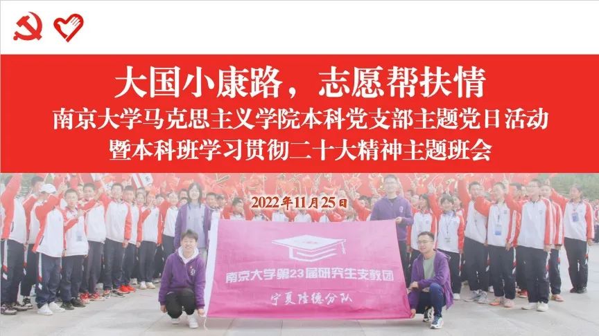 为深入学习宣传贯彻党的二十大精神,激励马院学子在学思践悟中理解党的二十大精神,2022年11月25日,马克思主义学院本科生党支部联合2021级本科生团支部开展“大国小康路·志愿帮扶情”学习党的二十大精神主题党团日活动。外国语学院博士生辅导员龙心悦老师、化学化工学院2021级本科生辅导员魏志老师、新生学院毓秀书院辅导员朱博阳老师、新生学院毓秀书院辅导员孙悦伦老师作为特邀嘉宾出席本次活动。整场活动由我院本科生党支部书记、本科生辅导员王泽森主持。