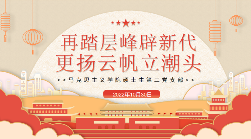 2022年10月22日,举世瞩目的中国共产党第二十次全国代表大会在北京人民大会堂胜利闭幕。为深入学习二十大报告精神,提升支部党员的思想理论修养,更好地发挥共产党员先锋模范作用,10月30日下午,我院硕士生第二党支部开展“再踏层峰辟新代,更扬云帆立潮头——二十大精神集体学习”线上主题党日活动。本次活动由硕士生第二党支部书记尹紫琦主持,南京大学马克思主义学院青年宣讲团讲师沙小梅作为特邀嘉宾进行主题宣讲。