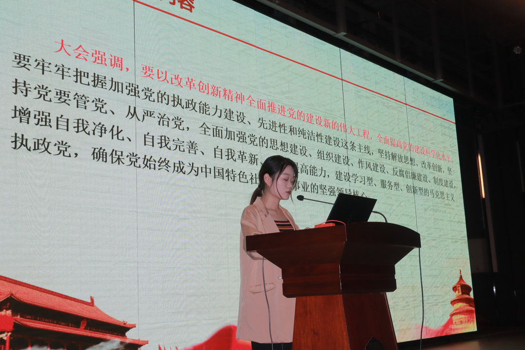 四个支部的19名党员同志给大家带来了一次别开生面的党课——党史联讲活动,串联成中国共产党波澜壮阔的100年征程。马克思主义学院21级硕士生第一党支部的四位成员为大家介绍了党的十六大到十九大。顾静雅同志讲述了党的十六大,是中国共产党在新世纪召开的第一次全国代表大会,也是在我国进入全面建设小康社会、加快推进社会主义现代化的新的发展阶段召开的一次十分重要的代表大会。此次大会把“三个代表”重要思想和马克思列宁主义、毛泽东思想、邓小平理论一道确立为中国共产党的指导思想,是一个历史性贡献,具有划时代的意义。
