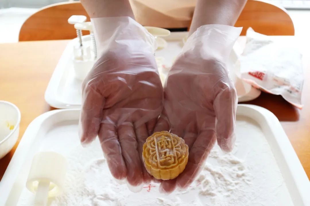 初次制作,有的月饼“发了福”,还有的“漏了馅”。几次尝试后,大家逐渐掌握了技巧和用量,伴随着一声声赞叹,一个个外观雅致、芳香四溢的月饼“脱模”而出,再配上精心挑选的音乐,现场气氛逐渐热烈了起来。