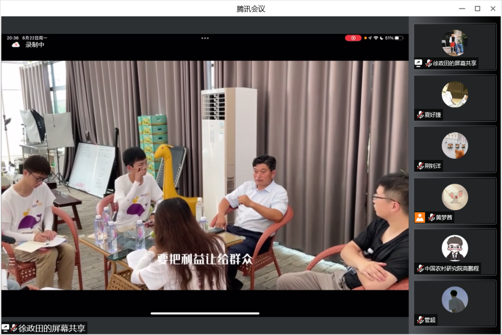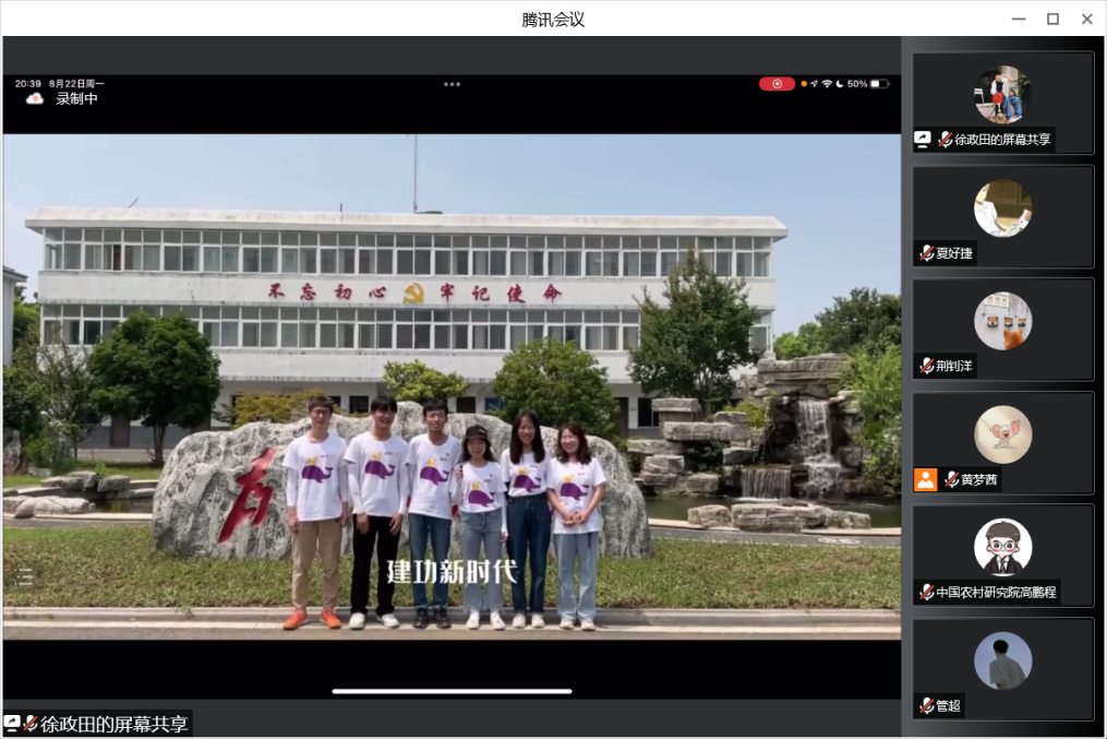 习近平总书记曾指出“广大团员青年自觉担当重任,深入基层一线,让青春在实现中华民族伟大复兴的中国梦中绽放异彩,为党和国家事业取得历史性成就、发生历史性变革贡献了青春、建立了重要功勋!”为深入学习习近平总书记关于青年工作重要指示精神,引领青年党员把人生理想融入国家和民族的事业中,积极投身乡村振兴伟大实践,在基层一线建功立业,2022年8月22日晚,马克思主义学院2021级硕士生第二党支部与安徽省民政厅养老服务处、中国农村调查中心(CRRC)联合开展“扬实践风采,展青年担当——2021级硕士研究生第二党支部暑期主题党日活动第3期‘乡村振兴’实践风采展示。”会议由2021级硕士生第二党支部成员荆钊洋同志主持。