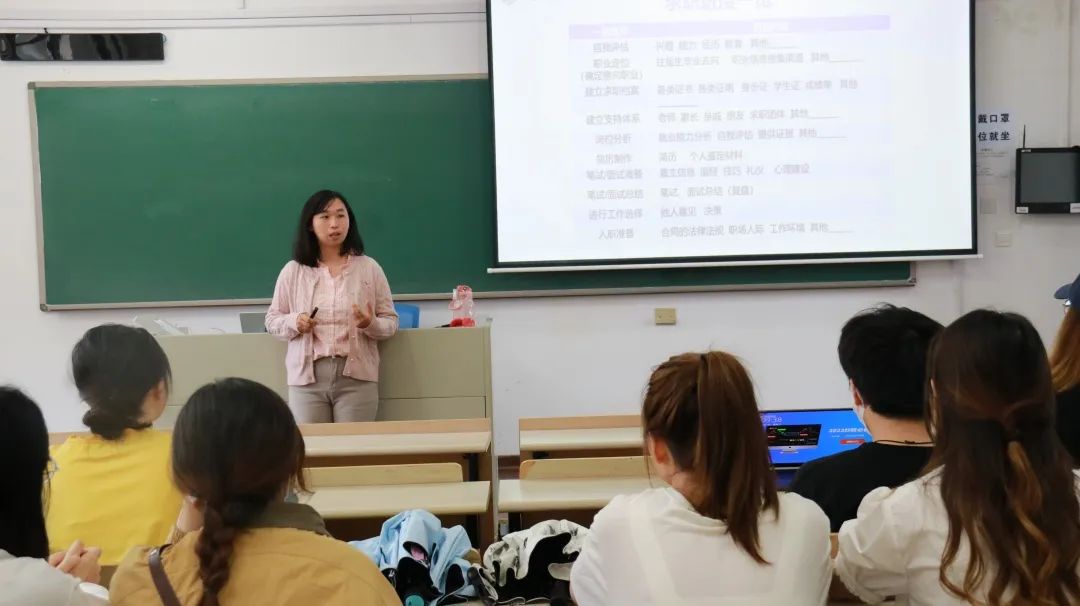 2022年5月17日上午9:30,南京大学马克思主义学院“师语撷珍·以心育新”系列讲座第四期生涯讲座在仙林校区思源楼317教室成功举办。本期讲座由我院党委副书记时昱老师、辅导员刘晶月老师主讲,以“研一阶段如何开展生涯规划”为题,为研一同学带来生涯第一课,帮助同学们树立生涯规划意识,努力发掘自我潜能,确立职业发展目标。