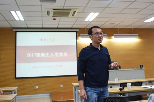 然后,王书记分别从院系发展、南大精神、人生目标等方面为2017级新生做了深入介绍,并为新生们提出了四点建议:第一,希望新生们能尽快地融入马院、融入南大,成为南大主人,践行南大精神;第二,希望同学们静心读书,学好“真经”,“真经”也就是指“经典”和“原著”,作为马院的学生,应该仔细研读马恩毛邓的经典著作,学习习近平总书记系列重要讲话精神,为进一步的理论研究打下坚实的基础;第三,不仅要读书,也要更多地参加学术活动和社会实践,从丰富多彩的实践中寻找新的知识增长点;第四,要以崇高的志向,情怀看待和规划自己的大学生活,通过3到7年的学习成为一个能为马克思主义研究作出贡献的人。讲话的最后,王书记再次对2017级硕博新生表达了祝福:希望同学们都能学有所得、学有所成;没有比人更高的山,没有比脚更远的路,衷心地祝愿同学们都能为自己的目标奋力前行,成为马院的骄傲!